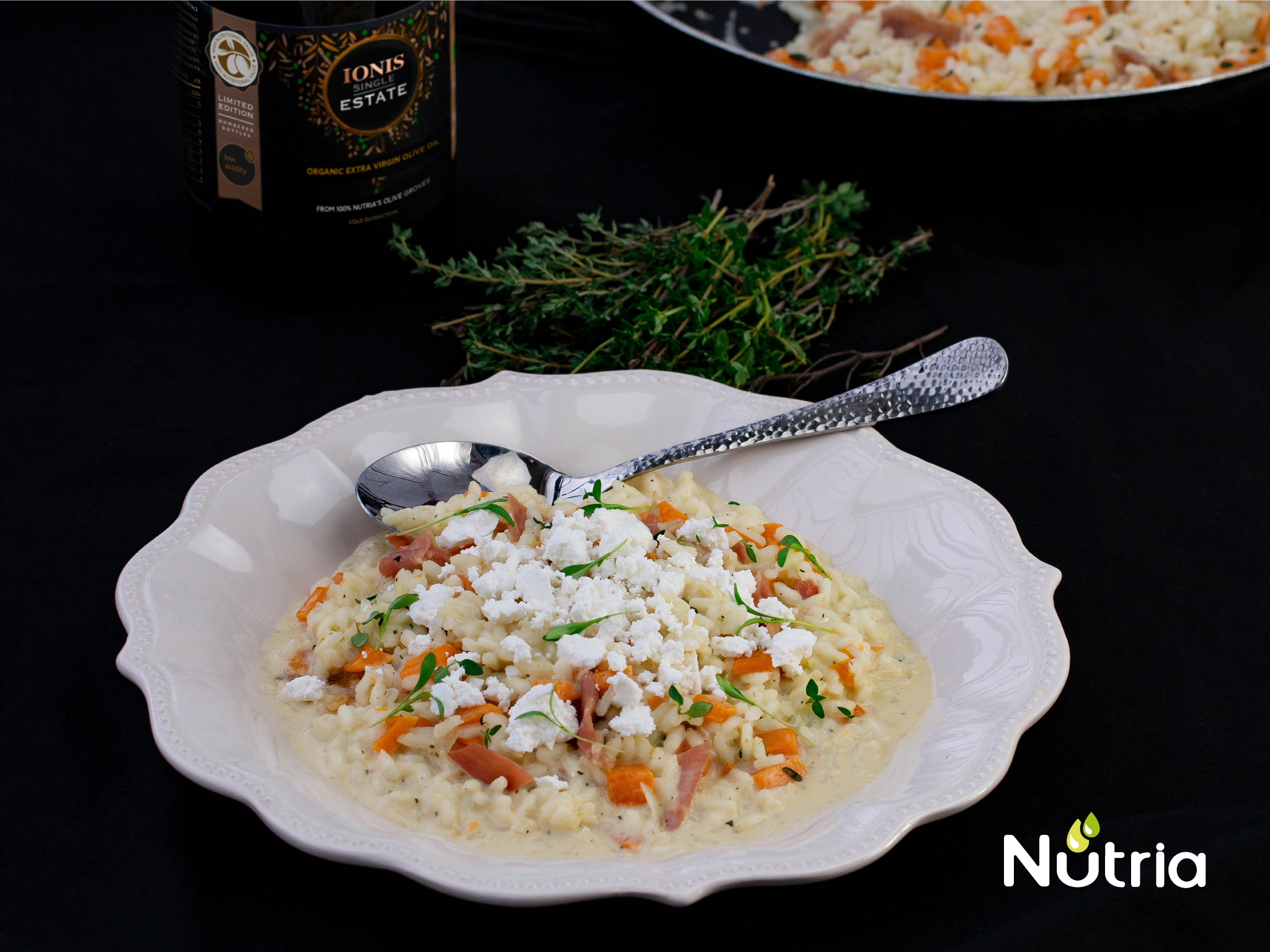 Ριζότο με κολοκύθα, προσούτο, ανθότυρο και θυμάρι